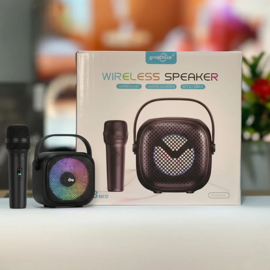 The GreatNice GTS-1941 is a compact, feature-packed wireless speaker designed for fun and portability. Despite its small 3-inch size, it delivers surprisingly clean and big sound with good bass, making it perfect for small gatherings, karaoke sessions, or personal use. With the included wireless microphone, you are instantly ready to sing along or make announcements anywhere you go.